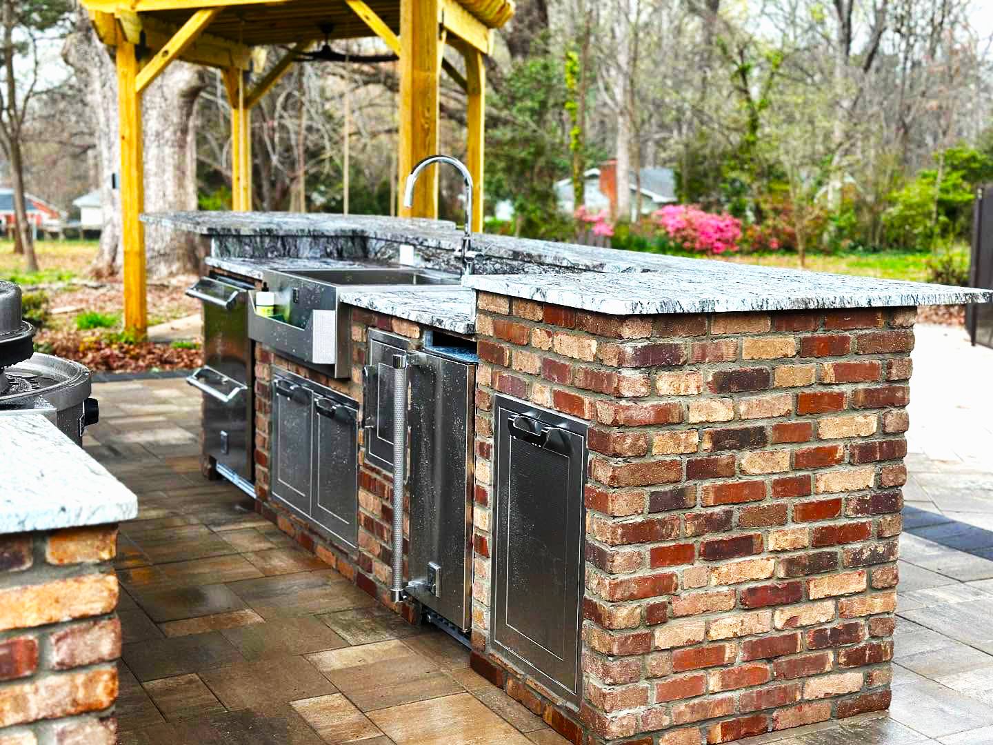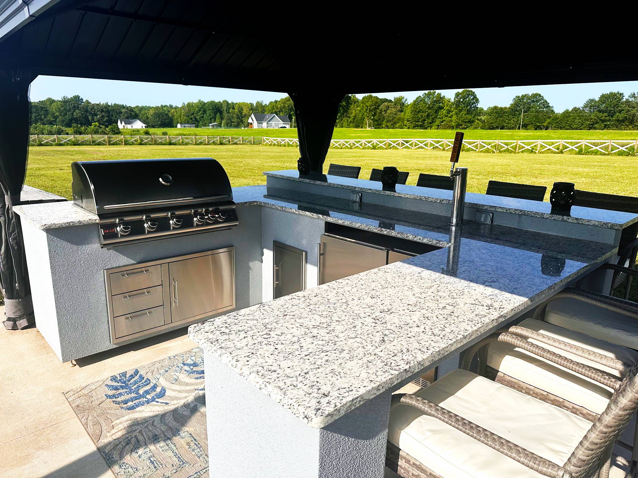 Granite remains the favorite countertop choice at Factory Direct Custom Outdoor Kitchens & Frames for its perfect blend of beauty, durability, and value—although nearly any countertop material can be accommodated. We offer a variety of finishing options: farmhouse, board and baton, brick or stone veneer, stucco, and custom paint. These allow every kitchen to flawlessly complement any setting, from rustic to modern.